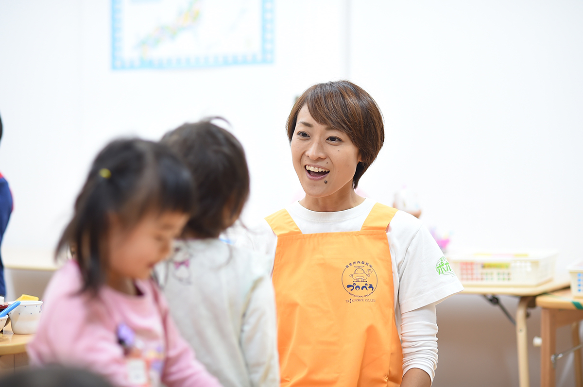 子育てをしながら働くお父さん・お母さんをサポートし、子どもの成長を喜び合える、やりがいいっぱいのお仕事です。また利用者のみなさんだけでなく、企業の人事担当の方、病院の事務局の方などからも「保育所があって良かった、助かっている」と言っていただける存在意義の高い施設です。